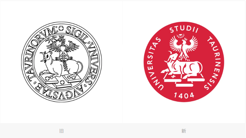 圆形环绕的文字中也不再出现十字架符号,使文字干净高效地展示出来。同时,原始印章中的文字「SIGILL UNIVERS AUGUSTAE TAURINORUM」更改为拉丁语 「UNIVERSITAS STUDII TAURINENSIS」,这个名字曾在古老的教皇诏书中被广泛使用。