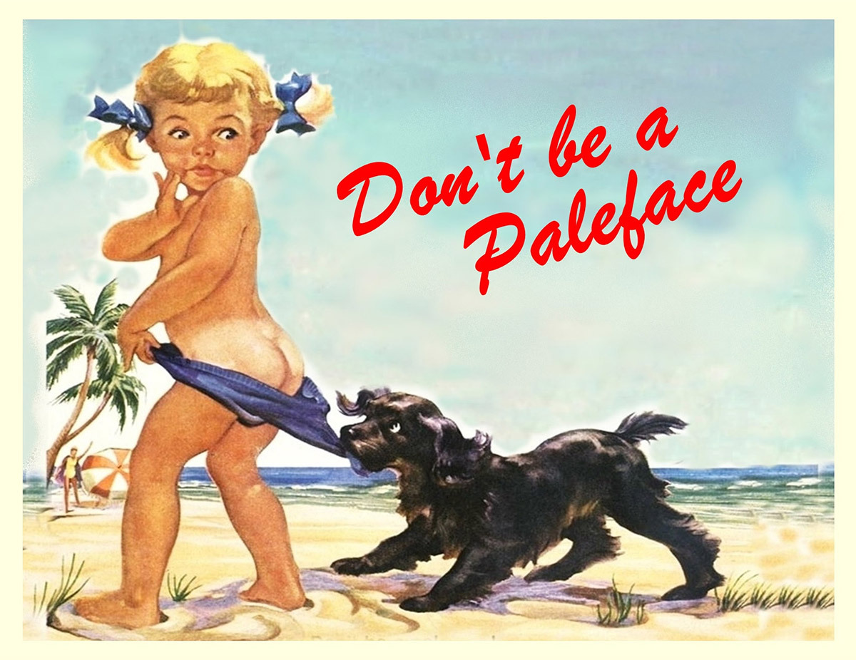 1953年,Coppertone 开始推出防晒霜产品时,设计了一张非常有趣的海报。海报中展示着一个扎着马尾辫的金发小女孩惊讶地盯着正在拉扯她泳衣的黑色可卡犬,可卡犬拉下她蓝色的泳衣,露出她雪白的肌肤,跟身上其他地方的褐色肌肤形成对比。这张海报让这家公司的名声大噪。随后,Coppertone 决定将这一形象永久的用作公司的LOGO。
