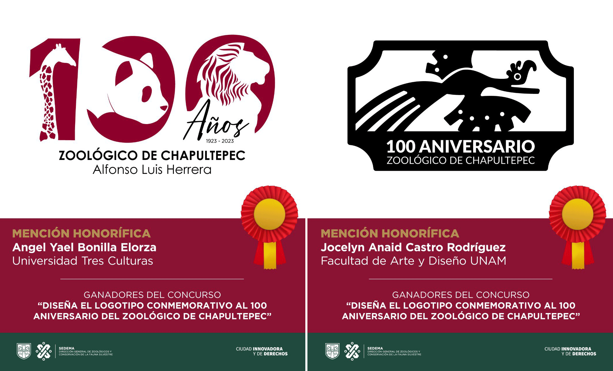 为了迎接开园100周年,墨西哥城 (CDMX ) 环境秘书处前段时间发起了一项100周年纪念LOGO征集比赛,有来自该国 17 个州的61 所大学和研究所的 375 名学生提交了他们的设计方案,这些作品提交给由八名专业人士组成的评审团进行投票。在审查每份提交的提案后,评审团根据其创造性、适用性和对动物园目标(包括野生动物保护)的代表性选出前三名。