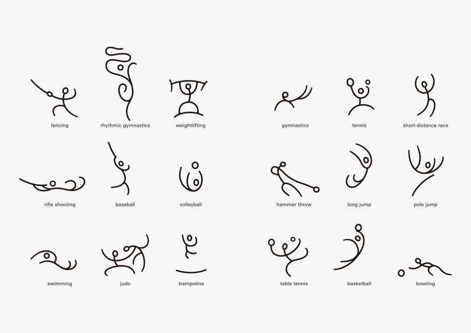 考虑到中国造型的魅力就在于其 "多元性",确定了标识也不能只是追求简单的方向。以中国的 象形文字为主干,各个组成部分都是各项赛事的运动选手们的图画解释(象形文字)。表达出多种竞技的图型的集合,形成了复杂并且有向心力的标志。