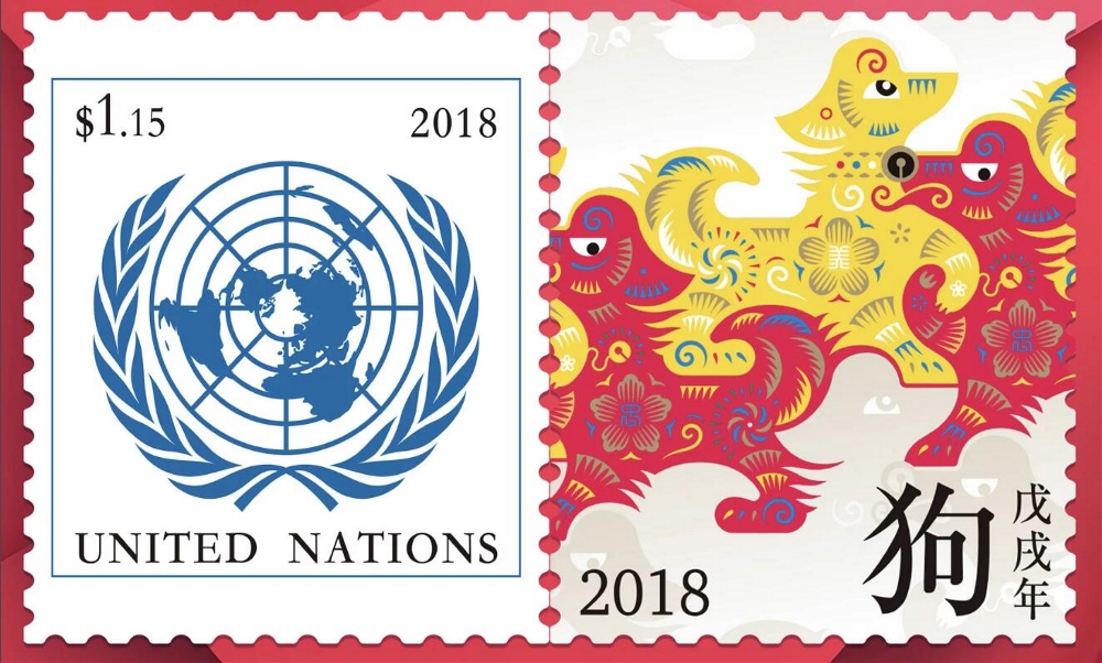据悉,联合国方面曾邀请潘虎进行狗年(2018年)生肖票的设计,那也是潘虎首次设计联合国生肖邮票。“在做‘狗票’的时候,我就在思考如何在创新和(观众)接受度上实现一个平衡。”据潘虎介绍,“狗票”其实是一个“无限延伸”的图形,“我认为全球倡导的观念就是共同发展的合作理念,而这个(‘狗票’)的设计就采取了共用图形的理念,我觉得这是很有意思的延伸”。