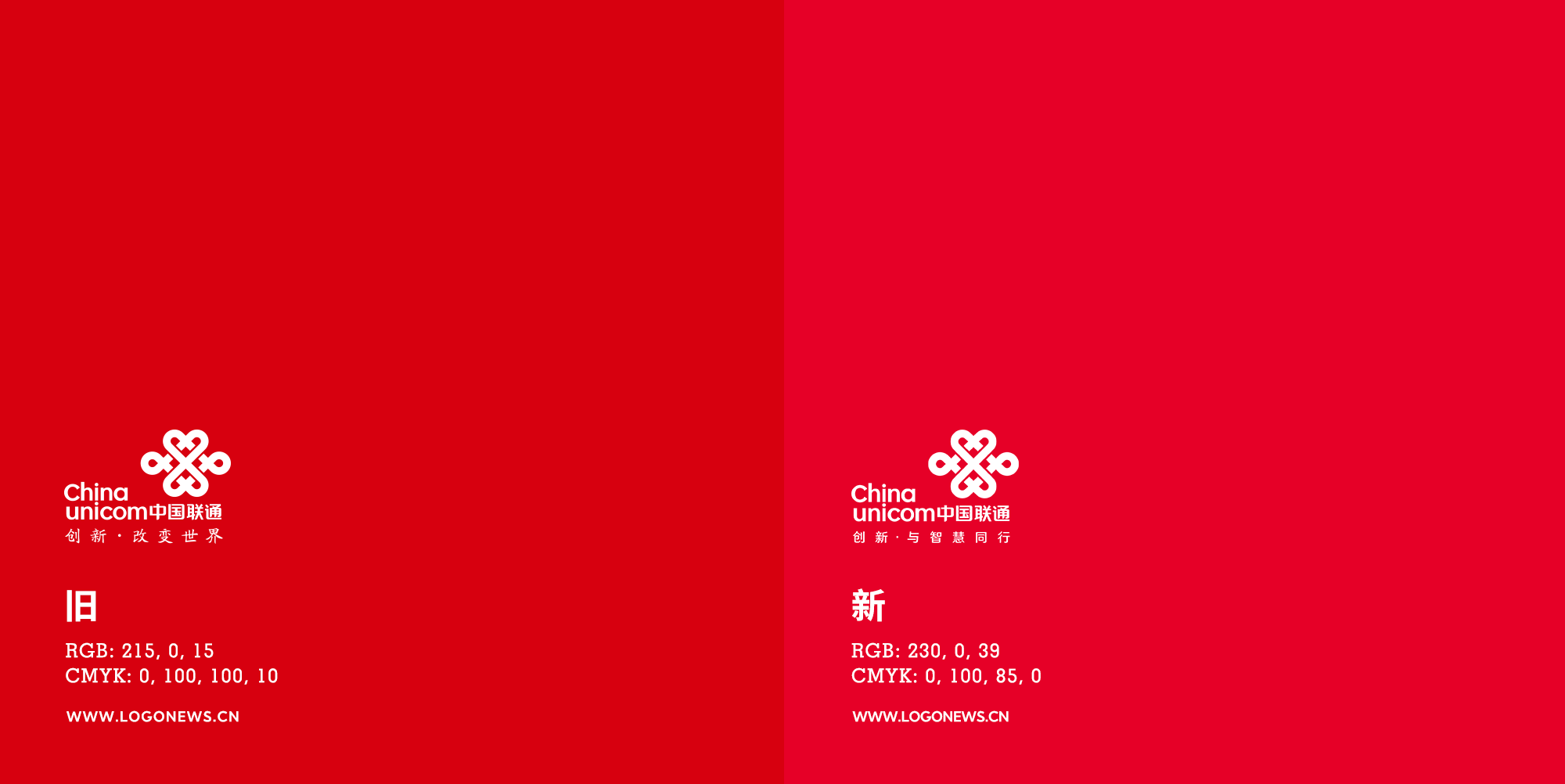 值得一提的是,早在2020年8月份,中国联通也曾更新过品牌色,和电信这次的颜色更新差不多,联通将红色的CMYK色值 0,100,100,10更改为0,100,85,0。新的红色更明亮鲜艳,同时也给人感觉变的更年轻更具亲和力。