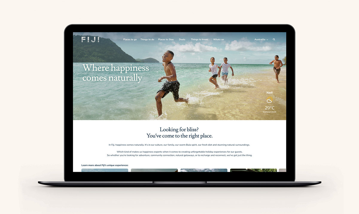2023年1月,斐济旅游局推出了一个新的旅游品牌宣传活动「幸福自然而来」,以纪念斐济首次开展游客来岛旅行营销12周年。全新的品牌形象将重点转移到斐济当地人文与自然环境的体验上。