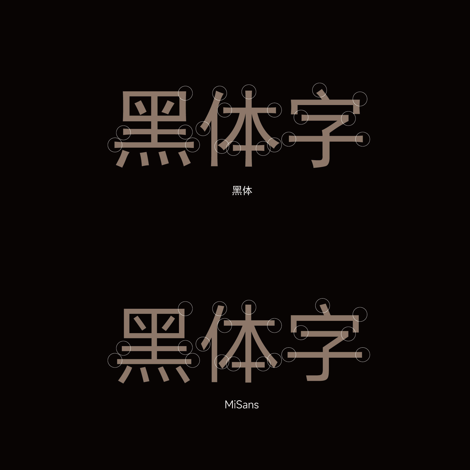 黑体在传统印刷工艺时期,设计上还有类似衬线的元素存在,设计者因为印刷的时候字的四周容易着墨少等原因而对笔画端头采用了喇叭口设计,进行视觉强调。随着近几十年技术的发展,现代激光和喷墨印刷代替了传统工艺,并且黑体大量运用于视网膜高清显示技术中,真正的汉字黑体逐步替代老式的装饰化黑体。黑体更加几何化,呈现现代感,视觉平衡匀称,因此很多品牌的标准字都是基于黑体改进设计的。